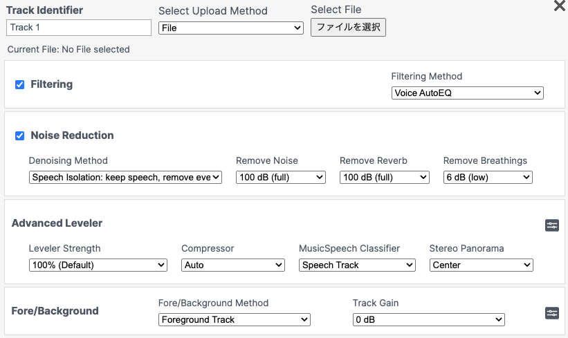 とにかくAuphonicが素晴らしい。Auphoicは正確にはポストプロダクションツールで、音声ファイルを作る最後の工程を自動化してくれるツール。本来は収録した音声を手で編集した後に最後にかけるものだが、レベル調整、無音部分やノイズ、咳払い除去などを自動処理してくれるAI編集機能があり、私は自分で編集は基本行わず、横着してそれに丸投げするスタイルを取っている。